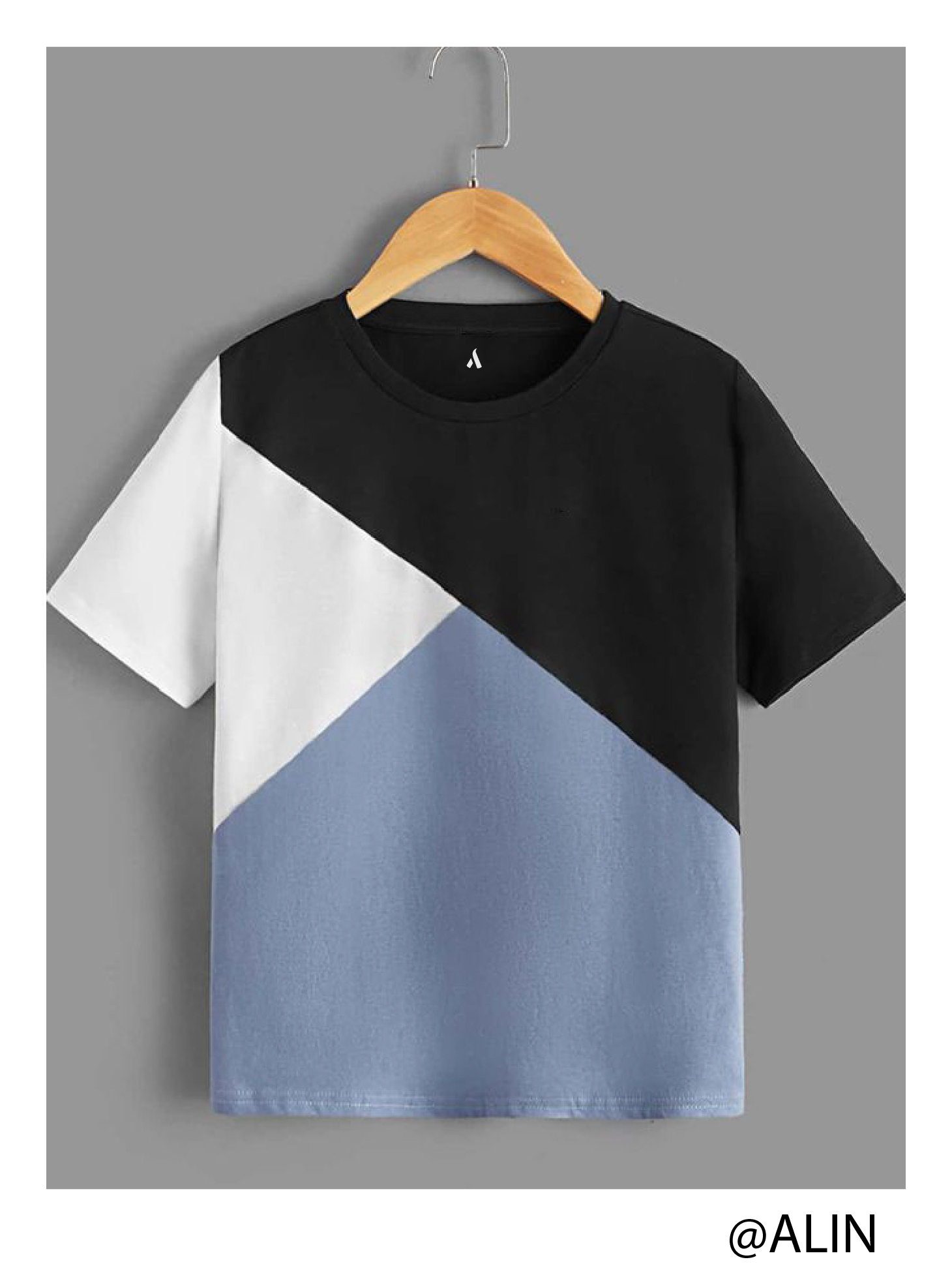BLACK, WHITE, GREY CUT AND SEW ROUND NECK TSHIRT